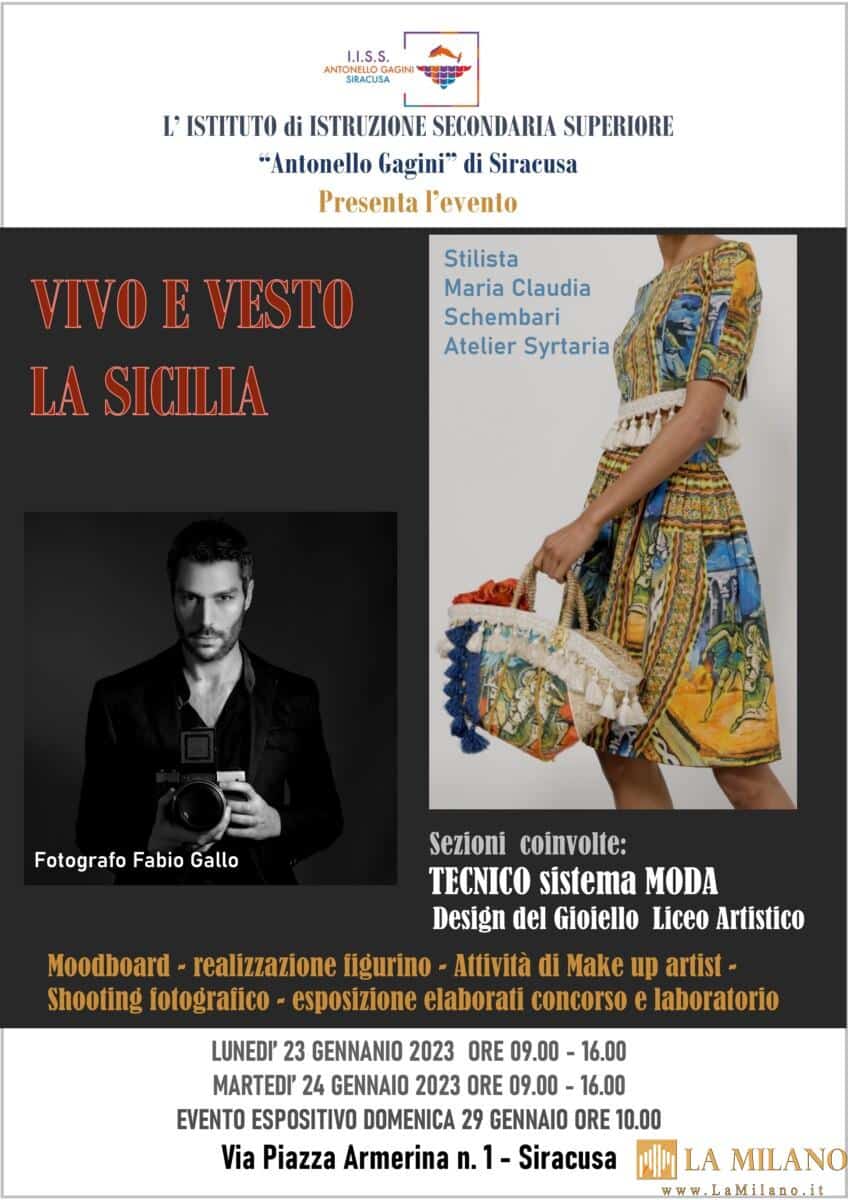 L’I.I.S.S. “Antonello Gagini” di Siracusa annuncia l’organizzazione dell’evento VIVO E VESTO LA SICILIA che vedrà la partecipazione degli studenti della sezione Tecnico Sistema Moda e Design del Gioiello Liceo Artistico.